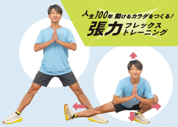 “立つ”張トレ バンザイ爪先立ち/“座る”張トレ 肩入れストレッチ