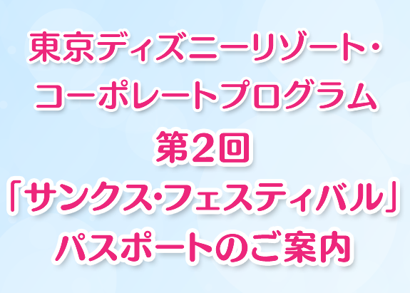 東京ディズニーリゾート・コーポレートプログラム第2回「サンクス・フェスティバル」パスポートのご案内