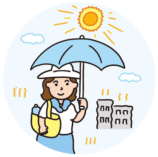 □ 外出時は帽子や日傘を使って直射日光を避ける