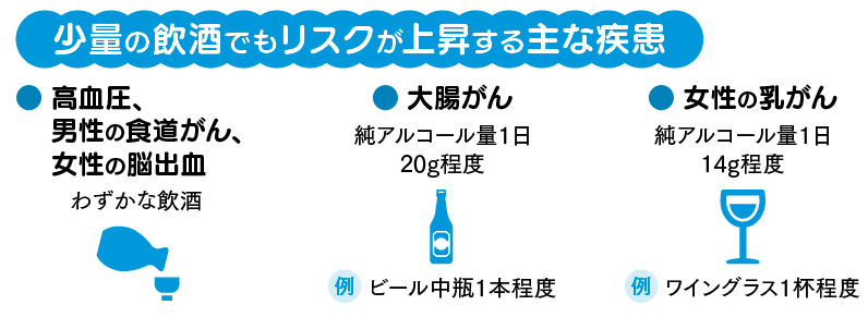 飲酒はしないに越したことはありませんし、飲む場合でも量が少ないほど、健康リスクを抑えることにつながります。